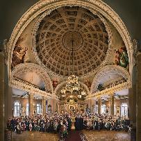 Панорамная групповая фотография в интерьере, снятая методом сферической панорамы, с художественной обработкой. Размер таких фотокартин превышает 3 кв. метра.