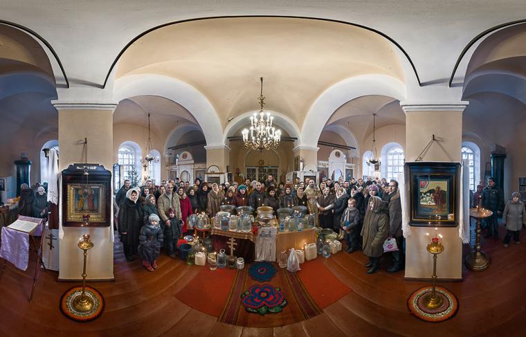 Приходская община Петропавловской церкви в селе Сомино Бокситогорского района Ленинградской области. Россия, Сомино, 19 января 2014 года.